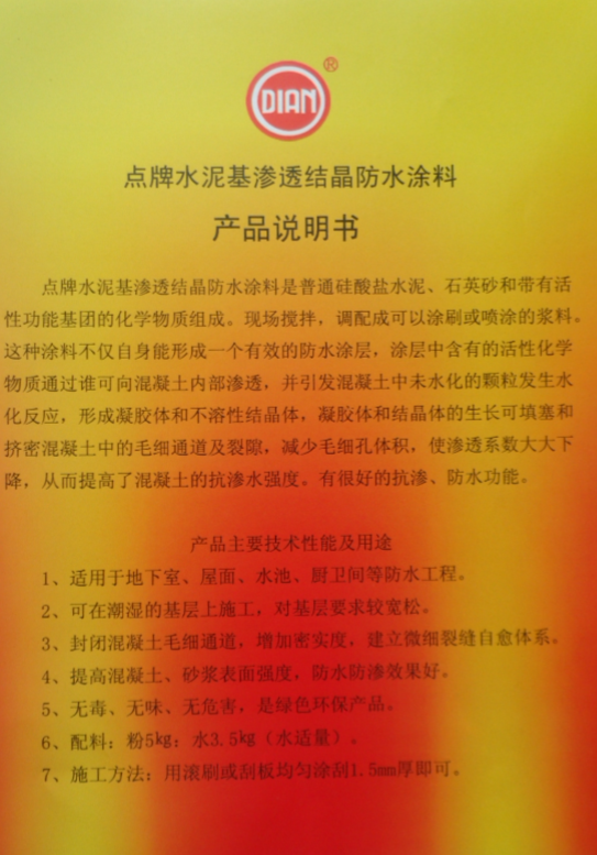 名稱:GFZ點牌水泥基滲透結晶防水涂料