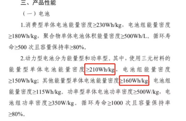 此前11月18日的《規(guī)范條件》要求,能量型電池能量密度≥180Wh/kg,電池組能量密度≥120Wh/kg。循環(huán)壽命≥1000次且容量保持率≥80%。